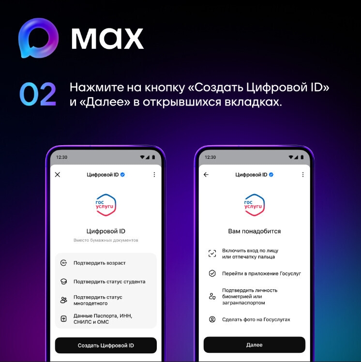 Что такое Цифровой ID? Это сервис на базе мессенджера MAX, работающий через инфраструктуру портала «Госуслуги». Он позволяет создавать, хранить и использовать виртуальные аналоги ваших официальных документов, таких как паспорт РФ, СНИЛС и полис ОМС.